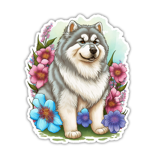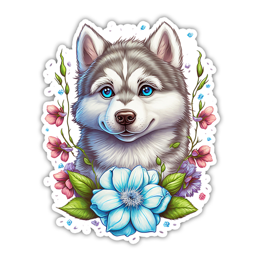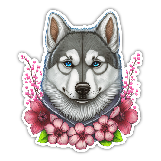 Floral Huskey Malamute Dog Die Cut Sticker (2784)