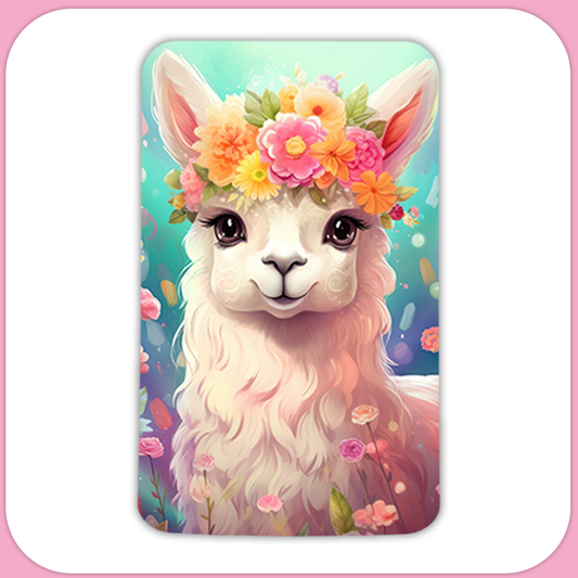 Colorful Llama with Floral Crown Rectangular Sublimation MDF Keychain