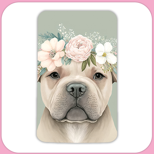 Sweet Pittie with Flower Crown Rectangular Sublimation MDF Keychain
