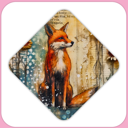 Storybook Red Fox Square Sublimation MDF Keychain