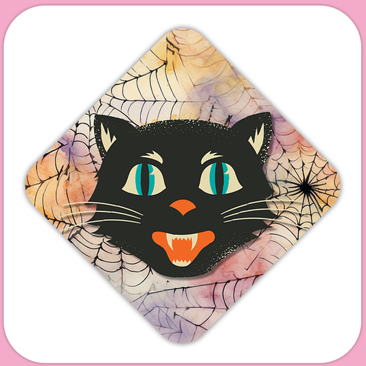 Retro Halloween Black Cat Square Sublimation MDF Keychain