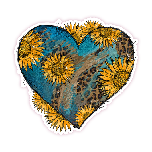 Boho Sunflowers Heart Die Cut Sticker (1520)