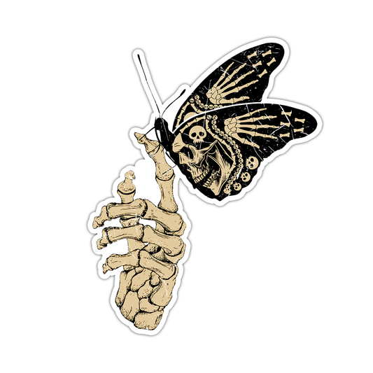 Gothic Butterfly on Skeleton Hand Die Cut Sticker (3373)