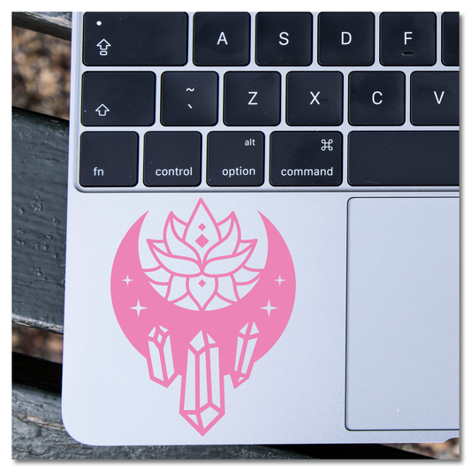 Boho Crescent Moon Lotus Flower Crystals Vinyl Decal Sticker
