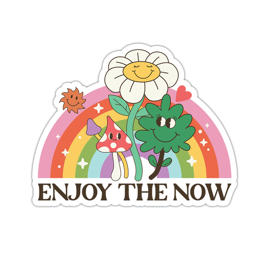 Y2K Enjoy The Now Rainbow Flowers Die Cut Sticker (2293)