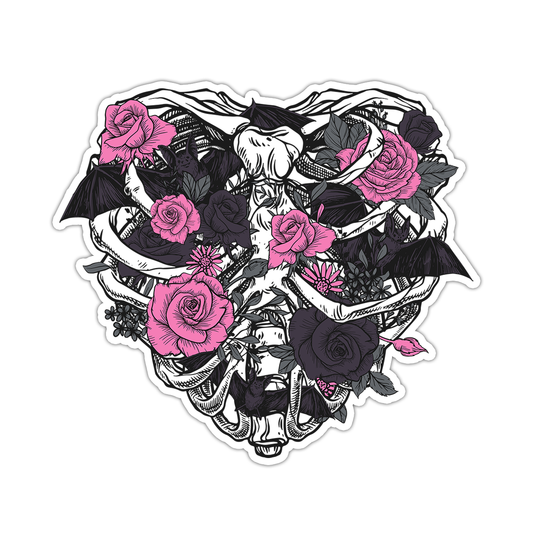 Gothic Heart Shaped Ribcage Flowers Die Cut Sticker (2297)