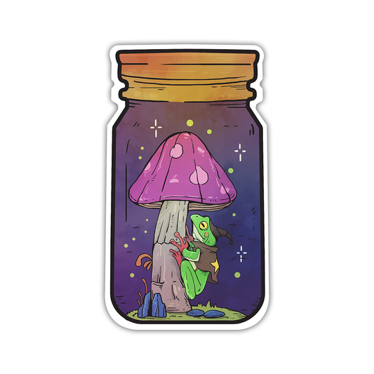 Jar of Mushrooms Magic Frog Die Cut Sticker (2398)