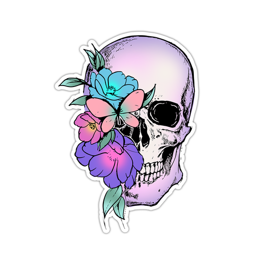 Skull with Flowers Die Cut Sticker (3303)