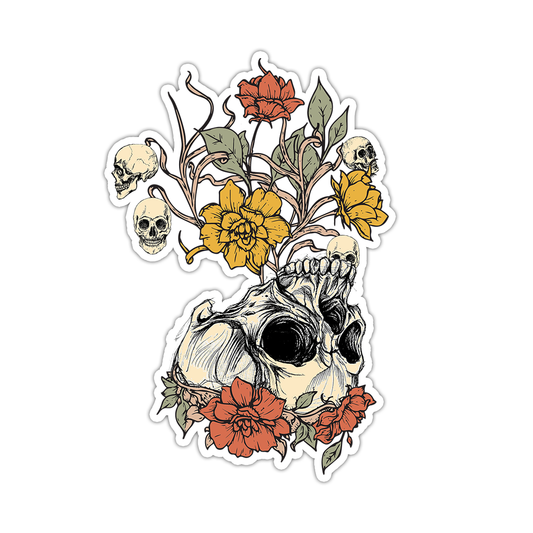 Skull with Wild Flowers Die Cut Sticker (3372)