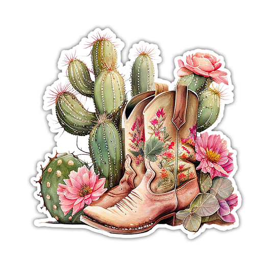 Desert Cactus Cowboy Boots Die Cut Sticker (4310)