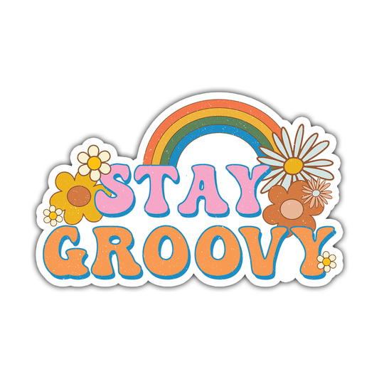 Stay Groovy Rainbow Y2K Flowers Die Cut Sticker (1925)