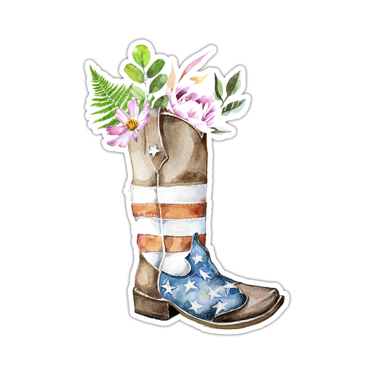 Boho Cowboy Boot Flowers American Flag Die Cut Sticker (2193)