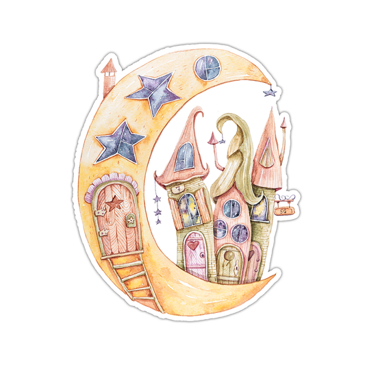 Fantasy House Crescent Moon Die Cut Sticker (2232)