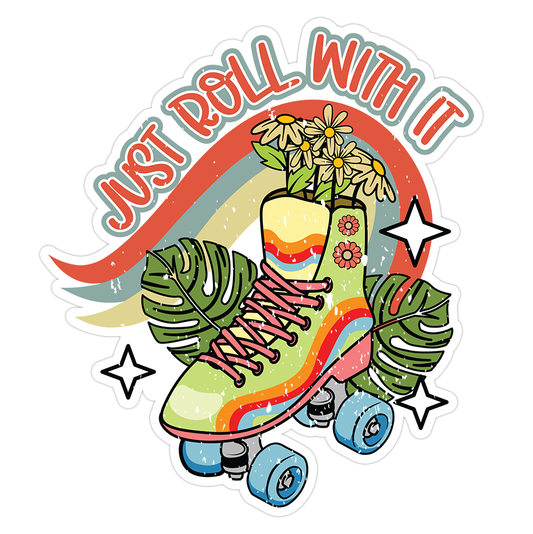 Just Roll With It Retro Roller Skate Die Cut Sticker (2765)