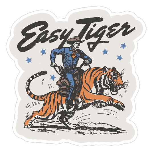 Easy Tiger Cowboy on Tiger Die Cut Sticker (5685)