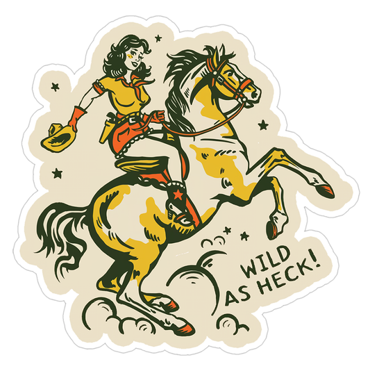 Tattoo Flash Cowgirl on Horse Wild As Heck Die Cut Sticker (5689)