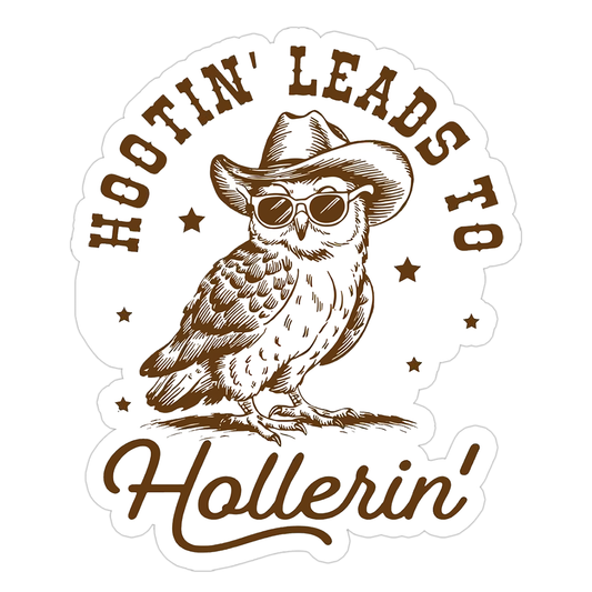 Hootin' Leads To Hollerin' Western Owl Die Cut Sticker (5691)