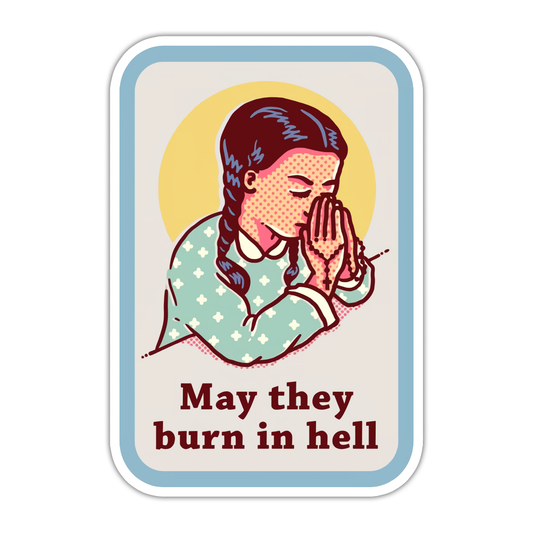Retro Girl Praying May They burn In Hell Die Cut Sticker (4940)
