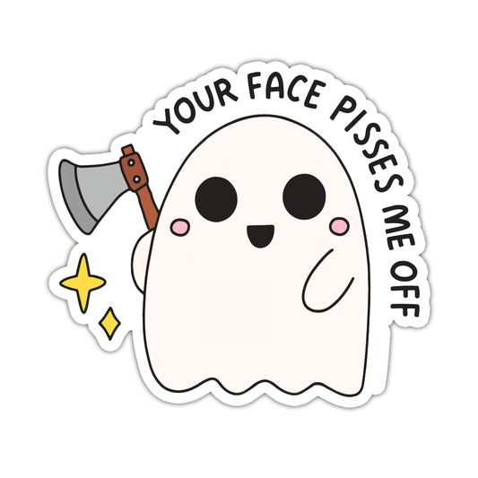 Your Face Pisses Me Off Ghost Hatchet Die Cut Sticker (4997)