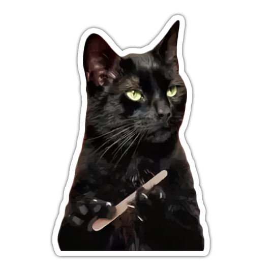 Black Cat Filing Nail Meme Die Cut Sticker (4957)