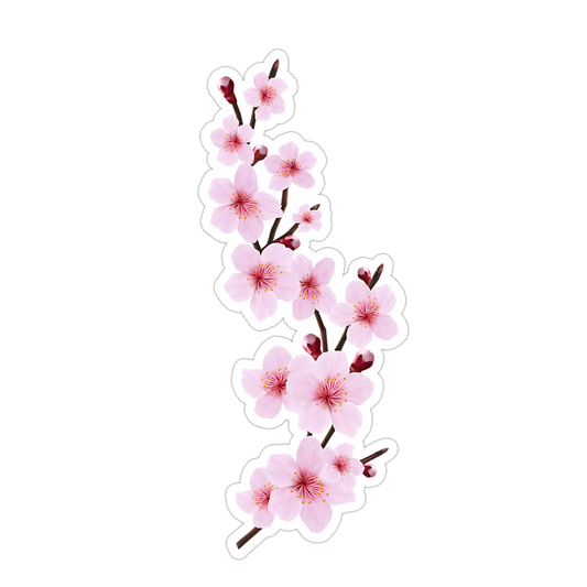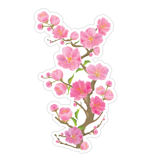 Branch of Pink Sakura Cherry Blossom Flowers Die Cut Sticker (1126)