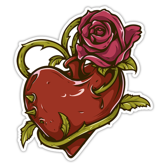 Heart Rose and Thorns Die Cut Sticker (1318)