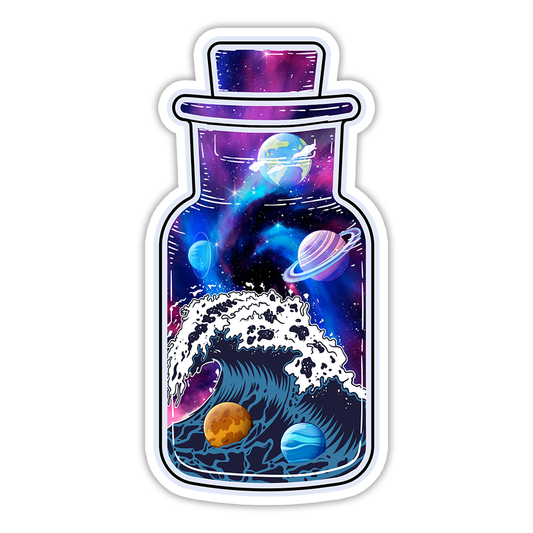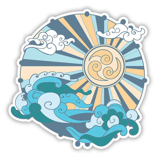 Illustrative Ocean Waves Sun and Clouds Die Cut Sticker (2694)