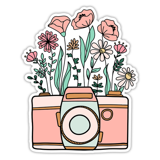 Pink Camera and Wildflowers Die Cut Sticker (2804)