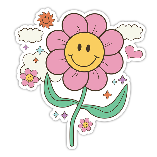 Y2K Retro Pink Flower with Smiley Face Die Cut Sticker (2808)