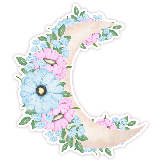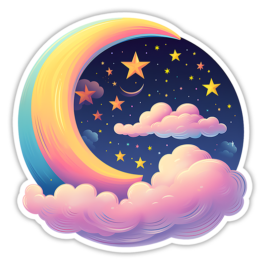 Dreamy Crescent Moon and Pink Clouds Die Cut Sticker (4183)