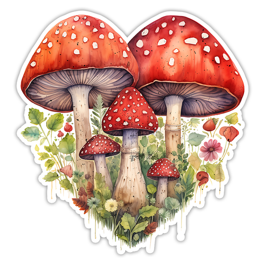 Red Cap Fly Agaric Mushrooms Heart Die Cut Sticker (4186)