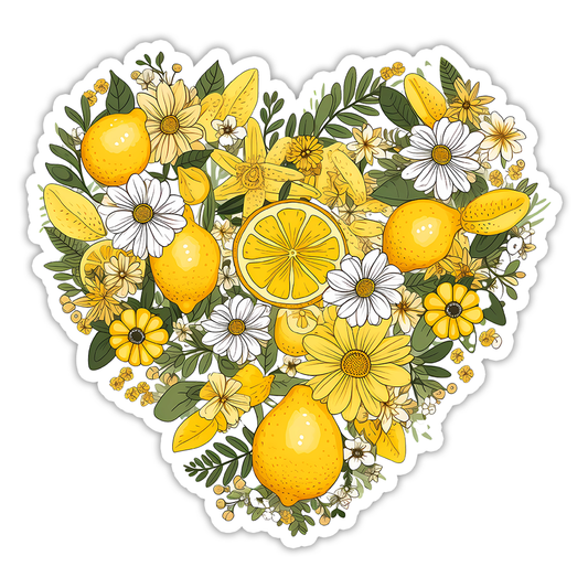 Lemons and Daisies In Heart Die Cut Sticker (4285)