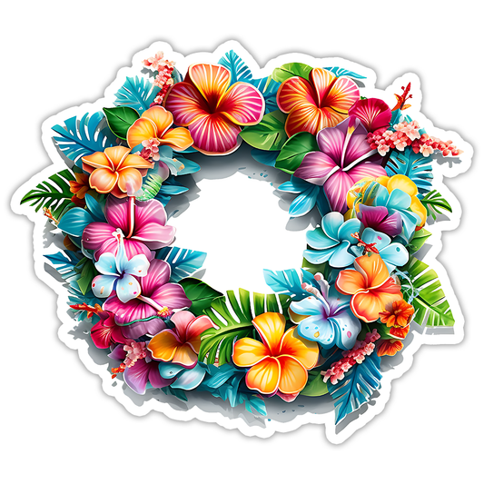 Tropical Hibiscus Wreath Die Cut Sticker (4301)