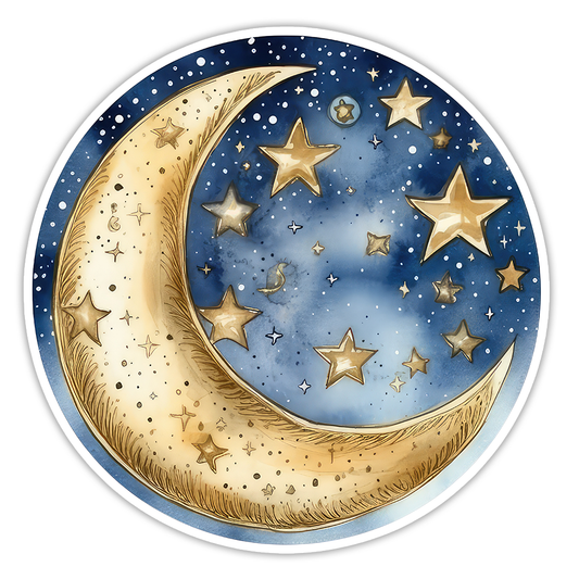 Glittery Crescent Moon and Stars Die Cut Sticker (4308)