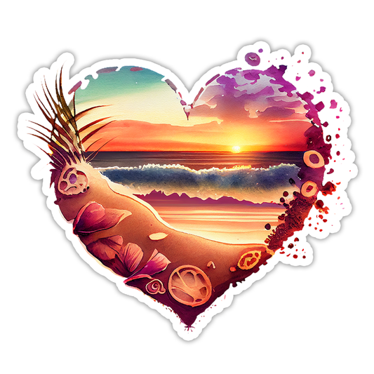 Tropical Beach Sunset Die Cut Sticker (4337)