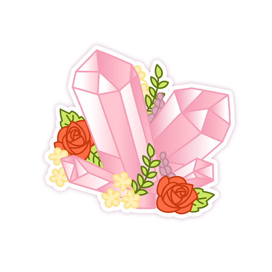 Pink Boho Crystals Flowers Die Cut Sticker (252)