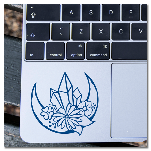 Crystals & Flowers on Crescent Moon Vinyl Decal Sticker