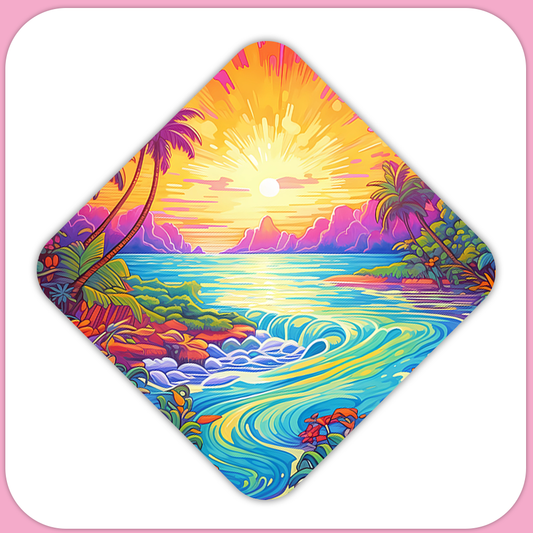 Tropical Beach Sunset Square Sublimation MDF Keychain